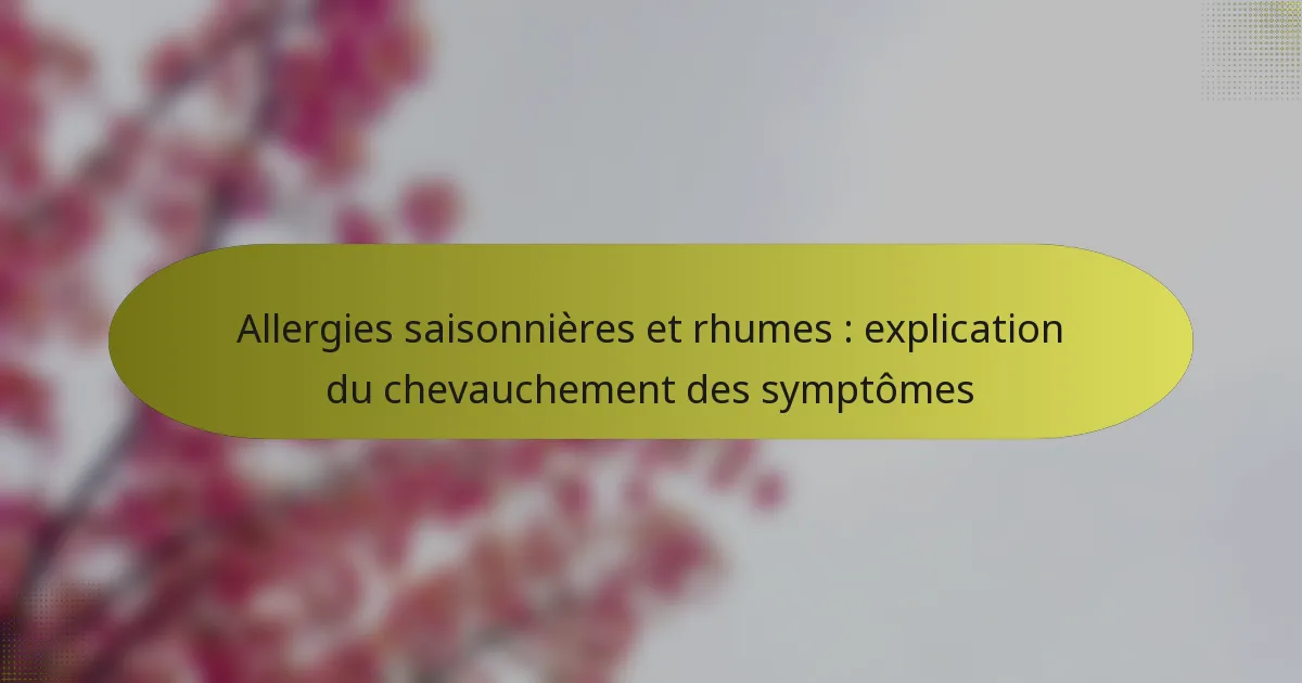 Les allergies saisonnières et les rhumes partagent plusieurs symptômes, ce qui rend difficile leur distinction. Les signes courants incluent des éternuements, un nez qui coule et de la fatigue, mais le contexte et la durée de ces symptômes peuvent aider à identifier la cause sous-jacente.